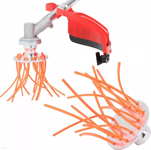 Specjalna głowica marki Krysiak z pionowo wkładanymi żyłkami o średnicy od 3 mm do 4 mm, która umożliwia usuwanie trawy i chwastów. Wyposażona w 8 złożonych na pół odcinków żyłki o długości ok. 30 cm zawarte w komplecie, co daje w sumie 16 wirujących żyłek roboczych. Może być stosowana bezpośrednio z kosą spalinową ( od pojemności silnika minimum 32 cm3 oraz ze śrubą głowicy kątowej 10 x1,25mm z lewym gwintem ).
