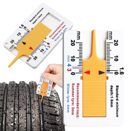 Miernik głębokości bieżnika, którego prosta budowa sprawia, że pomiar jest niezwykle łatwy. Dzięki czytelnej skali oraz antypoślizgowej powierzchni miarki wynik jest dokładny i wyraźnie widoczny.