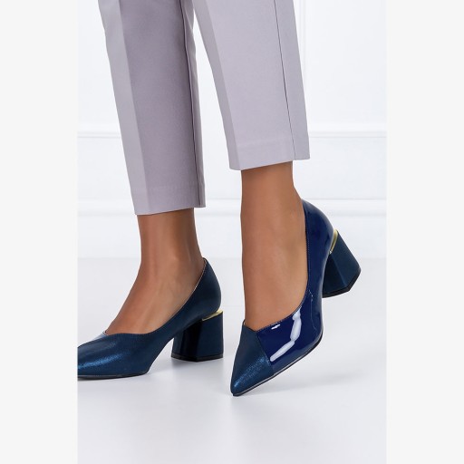 Granatowe czółenka damskie model ER23WX5-N zostały wykonane z wysokogatunkowej skóry ekologicznej, co gwarantuje doskonałą jakość, wygodę i dopasowanie do stopy. Materiały zostały ze sobą połączone w harmonijną kombinację zamszowej i lakierowanej skóry ekologicznej, co nadaje im niepowtarzalny wygląd i unikalny charakter. Czółenka na klocku to eleganckie i stylowe buty damskie, które są jednocześnie kobiece i nowoczesne. Ozdobny obcas w formie klocka, gwarantuje komfort, stabilność i wygodę nawet podczas długiego chodzenia. Szpiczasty nosek wysmukla stopę i jest uniwersalny. Skórzana wkładka w butach to dodatek, który ma kluczowe znaczenie dla komfortu i higieny. Ma naturalny kolor, dlatego nie barwi stóp. Można je nosić zarówno do spódnic czy sukienek, dodając szyku i elegancji, jak i do spodni, aby dodać nutkę kobiecości i klasy. Sklep Casu proponuje stylowe i nieszablonowe obuwie, które dopełni Twój outfit.