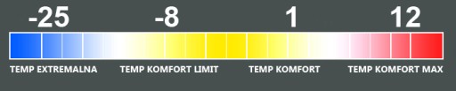 - Temp Extremalna - przekroczenie tej wartości może spowodować ryzyko hipotermii i oznacza warunki, w których można przetrwać najwyżej 6 do 8 godzin.