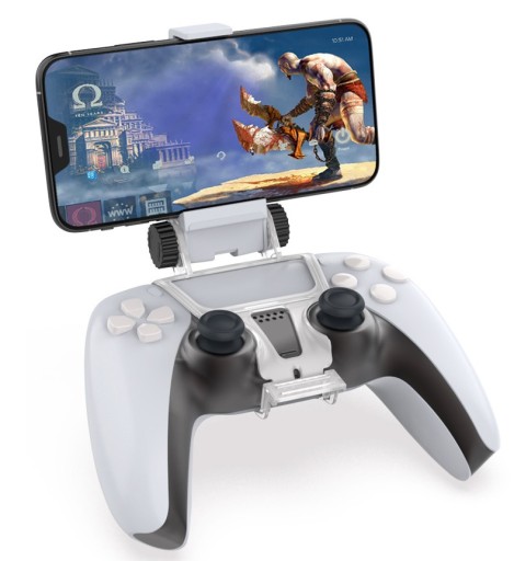 Uchwyt na telefon do pada PS5 umożliwia zamocowanie smartfona na kontrolerze DualSense do PlayStation 5. Pozwala to na wygodne korzystanie z urządzenia mobilnego podczas grania na konsoli.