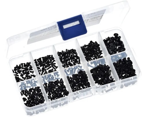 CZARNE ŚRUBKI WKRĘTY DO LAPTOPÓW M2 M2,5 M3 500SZT + ETUI