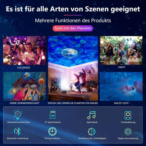 - Jest to najnowsza generacja Galaxy Star Light z projekcją planet, galaktyk, fal morskich i gwiaździstej nocy. 10 planet: Merkury, Wenus, Ziemia, Mars, Jowisz, Saturna, Uran, Neptuna, Pluto, Księżyc.