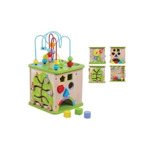 Edukacyjna kostka rozwija zdolności manualne, reguluje siłę i precyzję posługiwania się przedmiotami, uczy kolorów, kształtów.