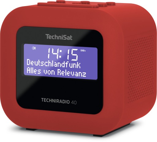 TechniSat TECHNIRADIO 40 - radio z budzikiem DAB+, FM, budzik, dwa regulowane czasy alarmu, minutnik, funkcja drzemki, przyciemniany wyświetlacz LCD, funkcja ładowania przez USB) czerwony