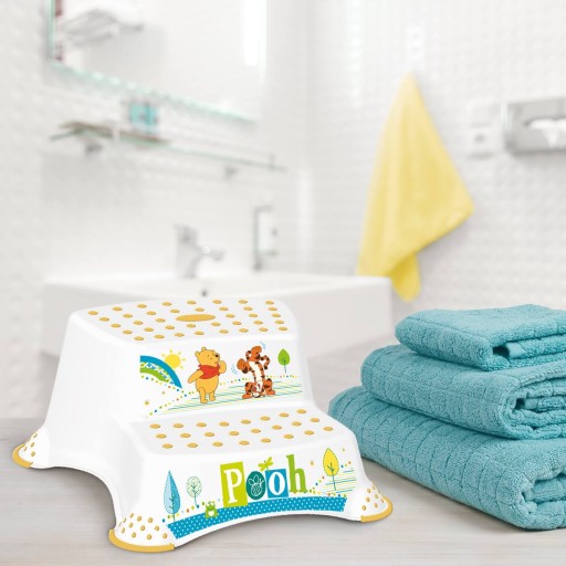Dzięki dwóm niezależnym stopniom, produkt pomaga dziecku już od najmłodszych lat dosięgnąć toalety, umywalki, stołu itp.