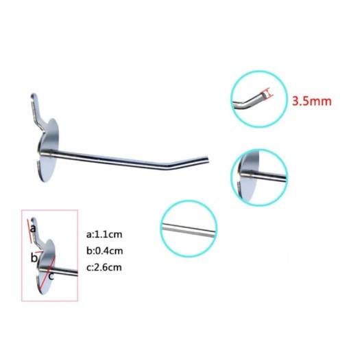 Haczyk uniwersalny chromowany pasuje do większości tablic perforowanych.