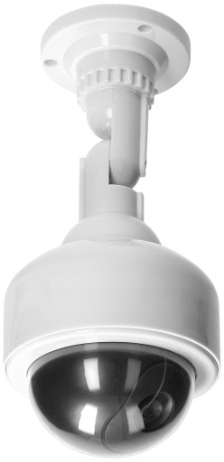 Atrapa kamery to wysokiej jakości imitacja prawdziwej kamery monitoringu CCTV. Migająca czerwona dioda LED sprawia wrażenie monitoringu całodobowego.