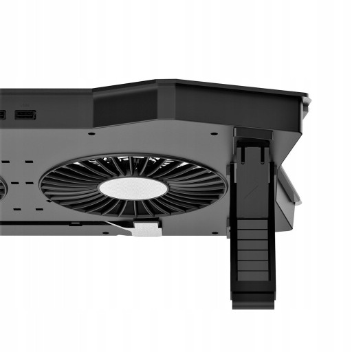 Podkładka chłodząca pod laptop z regulacją wysokości i podświetleniem RGB NAJWAŻNIEJSZE FUNKCJE2 wentylatory Regulacja wysokości i nachylenia Odpowiednia dla laptopów 10-18”Podświetlenie LED WYGODNA PRACA PRZED KOMPUTEREM Podkładka chłodząca zapewnia optymalną pozycję komputera - podwyższoną i nachyloną pod odpowiednim kątem, który dostosowywany jest przez użytkownika. Dodatkowo, podkładka posiada wbudowane 2 wentylatory, które chłodzą podzespoły komputera tym samym wpływając na przyspieszenie jego pracy i lepszą wydajność. SPECYFIKACJA TECHNICZNAWymiary: 410*280*34mmWymiary wentylatora: 115*115*15 mm - 2 sztuki Prędkość: 1200 RPM Obudowa: plastik Moc: 5W 1AZasilanie: DC 5VZłącze USB: 1.1*2 Kąt nachylenia: 6,5 - 45 stopni Długość kabla: 60 cm Współpracuje z laptopami od 10-18 cali Waga: 700 gramów