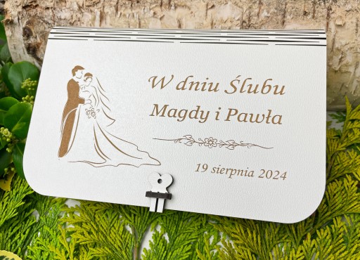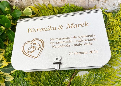 Piękne pudełko z grawerem na pieniądze, zdjęcia, pamiątka ślubna.