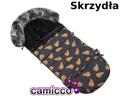 Kształt śpiworka został zaprojektowany tak, aby pasował do większości dziecięcych wózków i zapewniał swobodę ruchów. Duży kapturek wykończony jest sztucznym futerkiem.