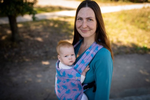 Nasze nosidełko jest przeznaczone dla dzieci, które ważą minimum 3,5kg i samodzielnie trzymają główkę. Nosidełko wystarczy do rozmiaru ubranek 104 cm czyli mniej więcej do wieku 3 lat.