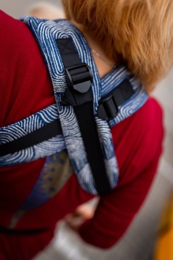 Panel można wyregulować na szerokość i wysokość tak aby idealnie dopasować go do swojego dziecka, jak i budowy rodzica. Nosidełko QUSY zostało zaprojektowane tak aby regulacja była prosta i intuicyjna, ale jednocześnie noszenia w naszym nosidełku było niesamowicie komfortowe. W QUSY nie ma przypadkowych elementów.Zatrzaski regulujące wysokość kołnierza są ozdobą nosidełka i dodają mu uroku. Do regulacji długości pasów naramiennych wykorzystaliśmy taśmę regulacyjną i delikatne magnesy, które mają utrzymać tkaninę na odpowiednim miejscu gdy nosimy dziecko na plecach. Natomiast pas biodrowy i znajdująca się na nim regulacja szerokości panelu jest totalną innowacją, której nie znajdziecie nigdzie indziej. Dzięki wykorzystaniu opasek na taśmie regulacyjnej przede wszystkim możemy bardzo precyzyjnie wyregulować nosidełko, a dodatkowo panel przepięknie i bardzo estetycznie układa się w zakładki.