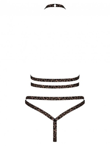 Przedstawiamy Ci odważny i zmysłowy komplet od Obsessive - Tigrita. To połączenie cętek, seksapilu i komfortu w jednym wyjątkowym produkcie. Ten kompleksowy zestaw obejmuje top oraz stringi, oba ozdobione wyrafinowanym wzorem w cętki, co nadaje im wyjątkowego uroku.