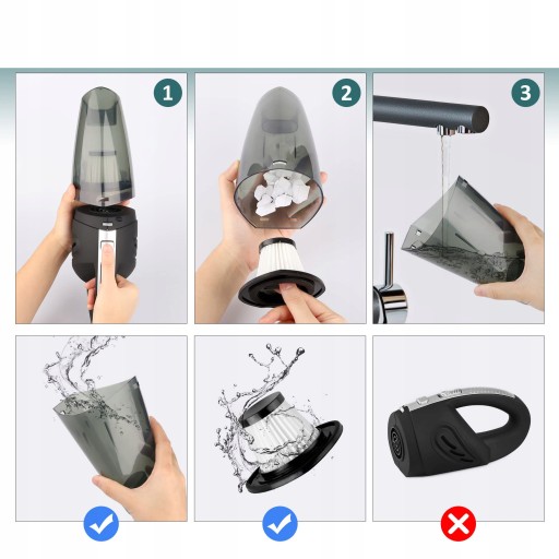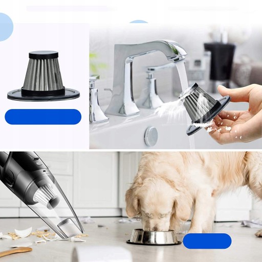 Udoskonalony filtr – Odkurzacz ręczny samochodowy posiada udoskonalony filtr z wysokiej jakości filtrem nylonowym, który wydłuża żywotność filtra i skutecznie zapobiega przedostawaniu się kurzu do części napędowej, jednocześnie zapewniając doskonałą wydajność ssania, żywotność produktu w optymalnym stanie.