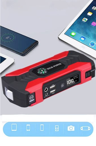 o pojemności 28000 mAh i prądzie szczytowym maks. 600 A, nasz przenośny rozrusznik samochodowy bezpiecznie uruchamia samochód, SUV, ciężarówkę lub furgonetkę z silnikami benzynowymi do 6,0 l lub silnikami wysokoprężnymi 3,0 l około 30 razy przy pełnym naładowaniu w ciągu kilku sekund. Urządzenie do awaryjnego uruchamiania może być w pełni naładowane w ciągu 5 godzin i może działać przez ponad 3 miesiące. Nadaje się więc do samochodów, pojazdów użytkowych, motocykli itp.