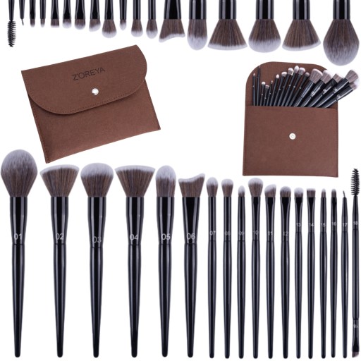 ➡️PROFESJONALNE PĘDZLE DO MAKIJAŻU Z'OREYA 18 SZT Z PRAKTYCZNYM EKO ETUI