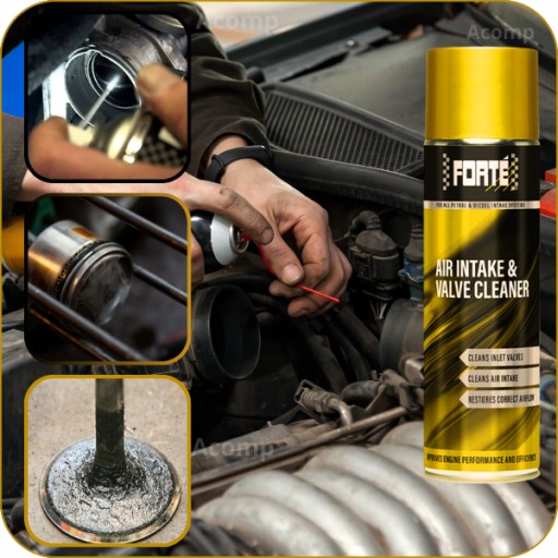 FORTE Air Intake & Valve Cleaner 500 ml - środek warsztatowy, wielofunkcyjny, przeznaczonym do usuwania nagaru z układu TP (tłok-pierścień), z zaworów i kolektorów ssących w silnikach. Stosowany przez autoryzowane stacje obsługi oraz serwisy niezależne.