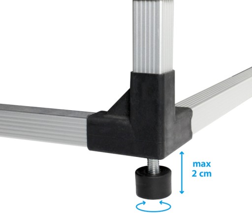 - Górny blat rolowany, wykonany z wytrzymałego aluminium ze zintegrowanym systemem poziomowania