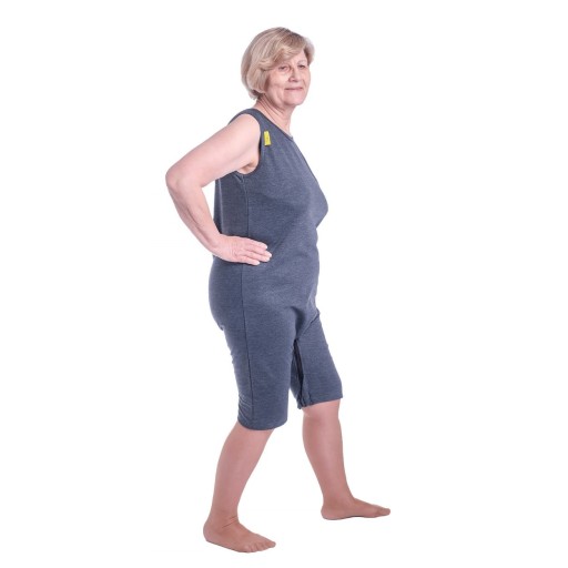 Body dla seniora - bez rękawów, krótkie nogawki z zamkiem w kroku, bez zamka z tyłu
