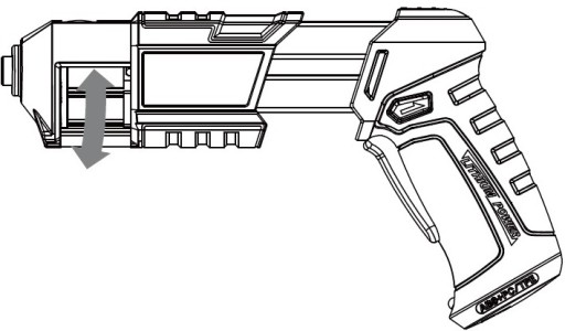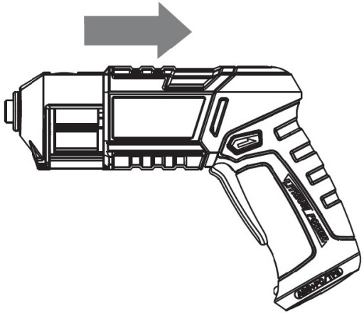 Aby wymienić końcówkę w trakcie pracy, należy odciągnąć osłonę zasobnika do przodu. Zwalnia to blokadę i automatycznie chowa używany bit do środka. Następnie obracamy zasobnik do momentu odnalezienia potrzebnej końcówki, odciągamy osłonę do tyłu i bit zostaje zmieniony oraz zablokowany.