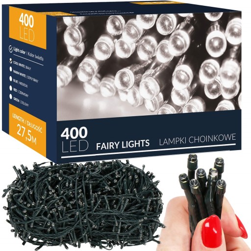 Рождественские елочные гирлянды 400 светодиодов 27,5 м НА УЛИЦЕ В ПОМЕЩЕНИИ ХОЛОДНЫЙ БЕЛЫЙ РОЖДЕСТВЕНСКИЙ