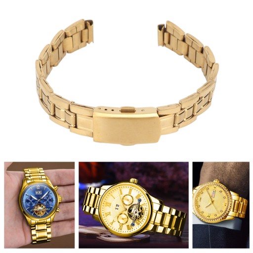Pasek do zegarka ze stali nierdzewnej Quick Release zamienna klamra z podwójną blokadą metalowy pasek do zegarka pasek dla mężczyzn, kobiet, złoty