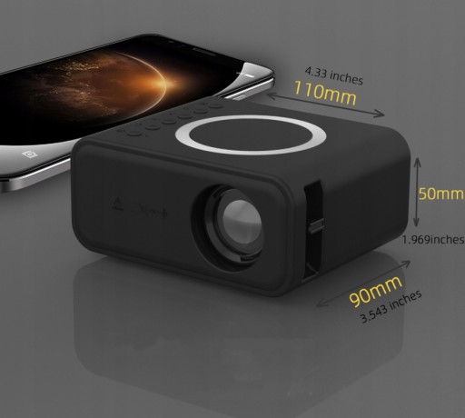 ⭐DUŻY EKRAN O MAŁYM ROZMIARZE:“16-100”ekranów z możliwością regulacji ostrościZa⭐Nowy układ scalony⭐Mała obudowa Duża mocRozmiar korpusu projektora: długość: 110 mm * szerokość 90 mm * wysokość 50 mm.lecana odległość projekcji: 0.5M-4M
