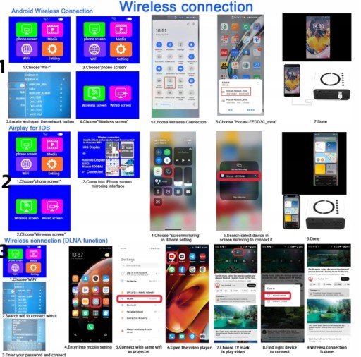 ⭐1、System Android łączy się bezprzewodowo z telefonem za pomocą tej samej metody obsługi ekranu⭐2、System iOS łączy się bezprzewodowo z telefonem komórkowym za pomocą tej samej metody obsługi ekranu