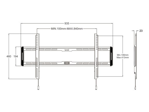 Multibrackets MB1015 to niskoprofilowe mocowanie ścienne do telewizorów płaskich o przekątnej od 40" do 86" i wadze do 60 kg. Dzięki swojemu płaskiemu projektowi, mocowanie to umożliwia umieszczenie telewizora zaledwie 23 mm od ściany, skupiając uwagę na telewizorze, a nie na mocowaniu. Jego solidna stalowa konstrukcja jest zarówno mocna, jak i trwała. Po instalacji telewizor może przesuwać się w lewo i w prawo, co daje możliwość idealnego ustawienia telewizora po zainstalowaniu go. Pasy szybkiego zwalniania na uchwytach montażowych pozostają ukryte dzięki systemowi Magnetycznemu Smart Multibrackets, ale gdy są potrzebne, łatwo można je pociągnąć w dół, aby odblokować telewizor z płyty ściennej i uzyskać dostęp do kabli.