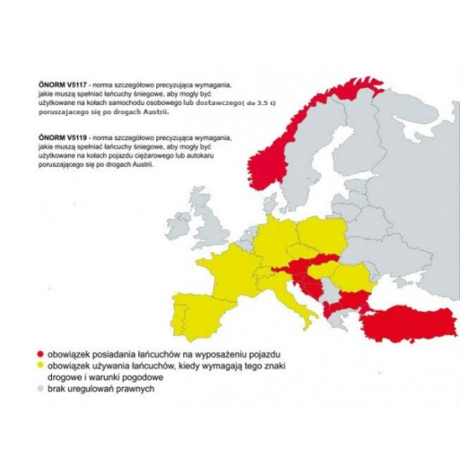 Przed dokonaniem zakupu łańcuchów upewnij się, że instrukcja samochodu nie zabrania montażu tradycyjnych łańcuchów na kole Twojego samochodu.Za źle dobrane łańcuchy firma Mobilbox nie odpowiada.