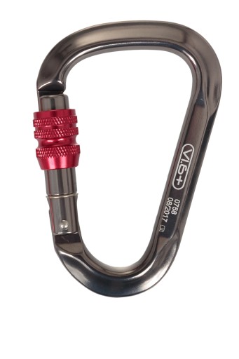 Karabińczyk Karabinek VI.6+ HMS SAFE - to kompaktowy i lekki karabinek marki VI.6+, który może służyć do mocowania worków transportowych, lonży do czekanów lub do zawieszenia butów podejściowych przy uprzęży. Może być również doskonałym uzupełnieniem sprzętu biwakowego i służyć do rozwieszenia hamaku. Wykonany został z lekkiego aluminium. Ma on konstrukcję o profilu D z zamkiem Key-lock oraz zakręcany pierścień, który zapobiega przypadkowemu otwarciu się zamka.