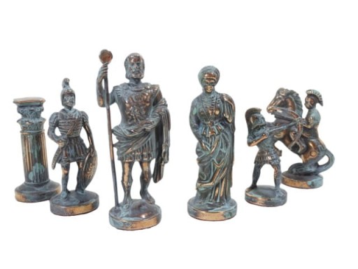 Zaprezentuj swoją pasję do szachów tym ekskluzywnym zestawem mosiężnych szachów inspirowanych mitologią grecką. Każda figura, wykonana z mosiądzu, przedstawia unikalne elementy tej bogatej kultury. Piony to łucznicy, król i hetman to bogowie greccy, a rycerze w rynsztunkach pełnią rolę gońca-rycerza. Skoczkowie z kolei są zaprezentowani jako jeźdźcy, natomiast wieże symbolizują kolumny greckie - te najwyższej klasy detaliki sprawiają, że te szachy to prawdziwe małe dzieła sztuki.