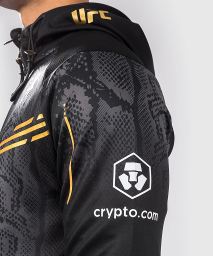 Męska bluza z kapturem UFC Adrenaline by Venum Authentic Fight Night Walkout ma dwie kieszenie zapinane na zamek oraz kaptur z siatkową podszewką i regulowanymi sznurkami.