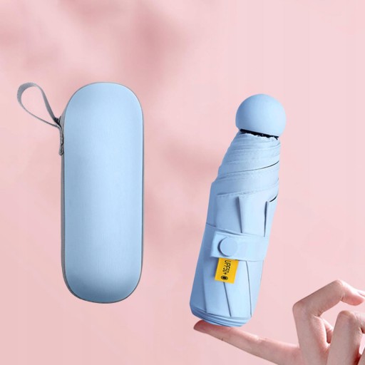 Parasol słoneczny do torebki Ochrona przed słońcem Mini parasol składany Kompaktowy parasol niebieski z etui