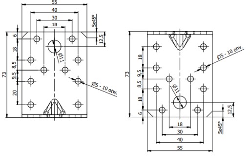 - ilość otworów -20 otworów ø5mm, 2 otwory ø11mm