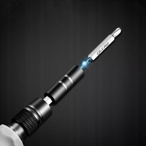- Wkrętak BAZA (rączka powlekana gumą - antypoślizgowa) - do niego podłączasz bity. UWAGA! W środku znajduje się regulowana przedłużka
