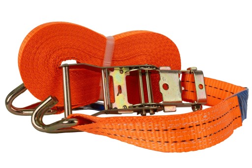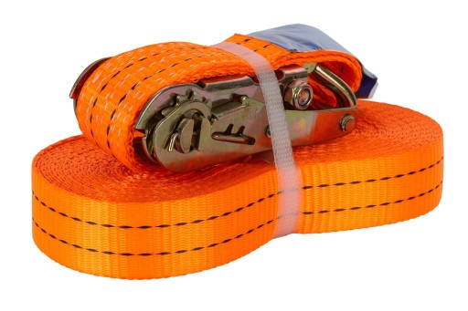 Pas transportowy o wysokiej wytrzymałości i niezawodności obsługi Długość całkowita pasa (czyli długość pasa oraz długość klamry łącznie) to aż 12 metrów dzięki czemu można nim zabezpieczać nawet bardzo gabarytowe ładunki. Szerokość pasa wynosząca 35 mm oraz jego wytrzymałość na poziomie 2 ton daje możliwość opasania nim nawet bardzo ciężkich towarów. Sprawdzi się przez to zarówno przy użytku profesjonalnym w firmach transportowych, na budowach ale również przy przewozach prywatnych. Wszystkie elementy metalowe w tym haki i grzechotka zostały wykonane z bardzo mocnej stali odpornej na korozję. Każdy element pasa transportowego jest zatem gotów do pracy z najwyższymi obciążeniami.