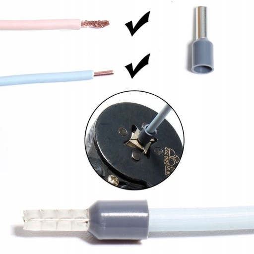 - Prawidłowo zaciśnięte tulejki gwarantują poprawny kontakt, nawet po wielokrotnym montażu w terminalu, co zwiększa bezpieczeństwo i skuteczność wykonanych połączeń.