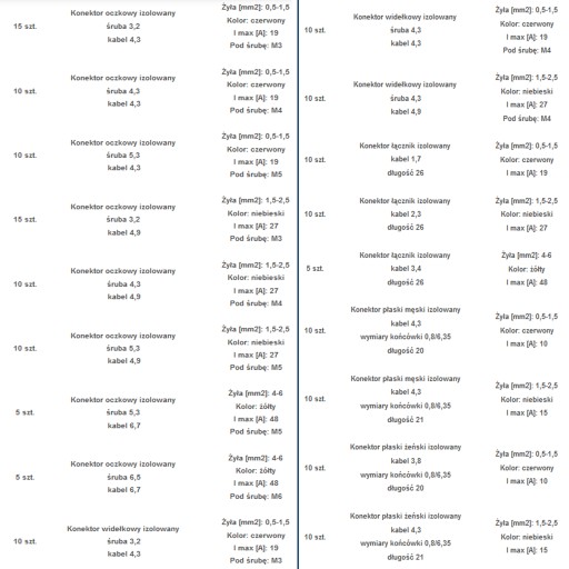 DANE TECHNICZNE KONEKTORÓW:
