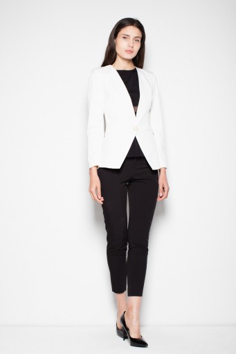 Prosty i taliowany żakiet VENATON to niezbędny element w garderobie każdej modnej kobiety. W kolorze ecru jest ponadczasowy i uniwersalny, idealny na wiele okazji, od biura po codzienne spotkania. Zapinany na jeden guzik, z kieszeniami, krótki i dopasowany do bioder, dodaje każdej stylizacji kobiecego akcentu. Szyty w Polsce, gwarantuje trwałość i jakość.