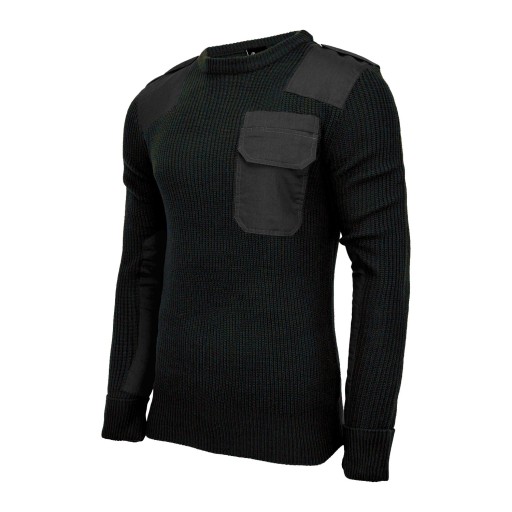 Sweter Wojskowy BRANDIT Bundeswehr Czarny (5018.2) inspirowany jest legendarnym wzorem znanym z Bundeswehr. Bluza ta charakteryzuje się wzmocnieniami na barkach i łokciach. Takie dodatkowe elementy wzmacniające sprawdzą się podczas zadań takich jak czołganie. Wszywki na ramionach przydadzą się podczas przenoszenia obciążonego plecaka. Sweter wykonany został z trwałego i przyjemnego w dotyku akrylu. Tkanina zapewnia optymalny komfort termiczny. Ponadto, rękawy, dół i kołnierz wykończono elastycznymi ściągaczami, które dostosowują się do kształtu ciała.