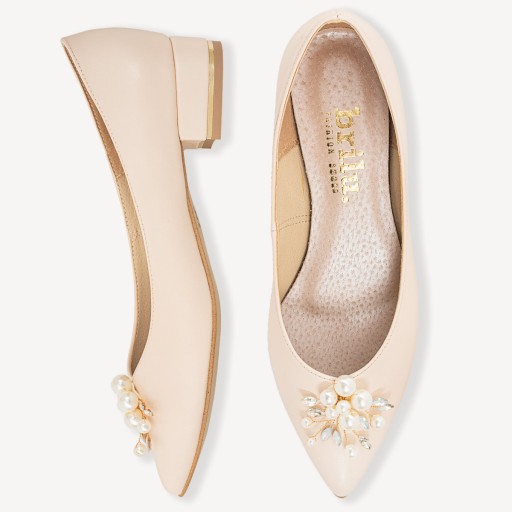 Ślubne balerinki z perłową ozdobą Gladys cieliste ecru