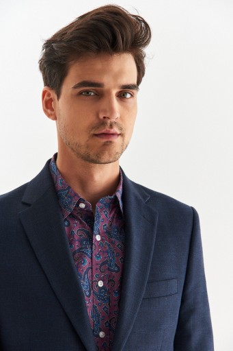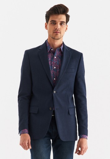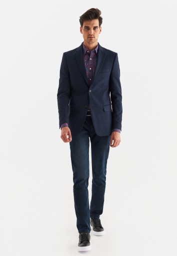 Granatowa marynarka męska Premium od Pako Lorente. Model wykonany z tkaniny składającej się w 47% z wełny Marlane, 40% bawełny, 10% lnu, 2% poliamidu oraz 1% elastanu. Fason Slim Fit, zwężany w talii, który doskonale podkreśla atuty męskiej sylwetki. Klasyczny fason marynarki w kolorze ponadczasowego granatu to must have w szafie każdego mężczyzny. Pasuje zarówno na większe wyjścia jak i na co dzień.