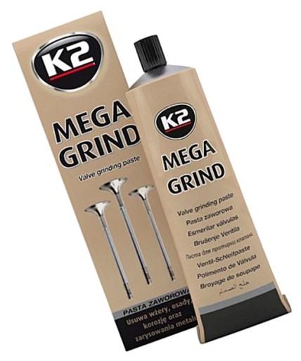K2 MEGA GRIND - innowacyjna pasta do docierania zaworów oraz gniazd zaworowych w silnikach spalinowych. Zaprojektowana z myślą o stosowaniu we wszystkich typach silników (benzynowe, diesla, LPG itp.). Dzięki nowoczesnej formule, pomaga bez większego wysiłku wygładzić oraz dopasować do siebie wszystkie metalowe powierzchnie np. gniazda oraz grzybka zaworowego. Skutecznie usuwa uszkodzenia, naloty, osady oraz korozję z metalowych elementów, zapewniając w ten sposób sprawne działanie układu zaworowego. Może być używana ręcznie oraz maszynowo. Produkt przeznaczony jest do użytku profesjonalnego.