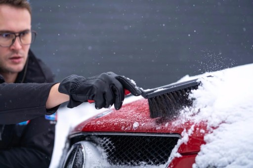 2️⃣ Następnie użyj Miękkiej Szczotki Zmiotki Vikan do zmiatania śniegu z karoserii, unikając nadmiernego nacisku.
