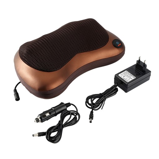 W zestawie znajduje się: Poduszka masująca (taka jak na zdjęciach) zasilać 230V przejściówka do podłączenia pod zapalniczkę w samochodzie oryginalne opakowanie kartonowe.