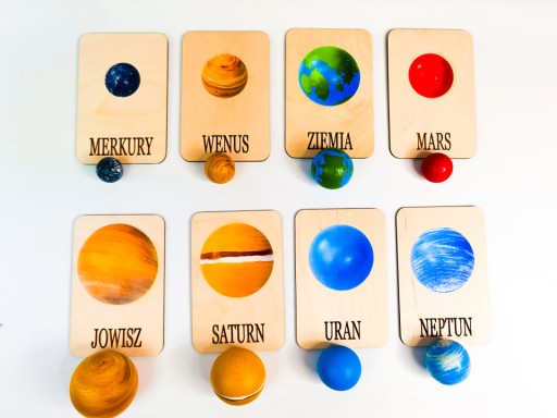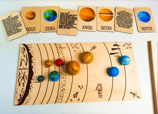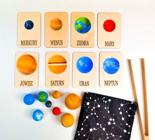 - Drewniane karty z nazwami i opisami: Do zestawu dołączone są drewniane karty z nazwami i opisami planet, co pomaga w nauce oraz rozwoju koordynacji ręka-oko.