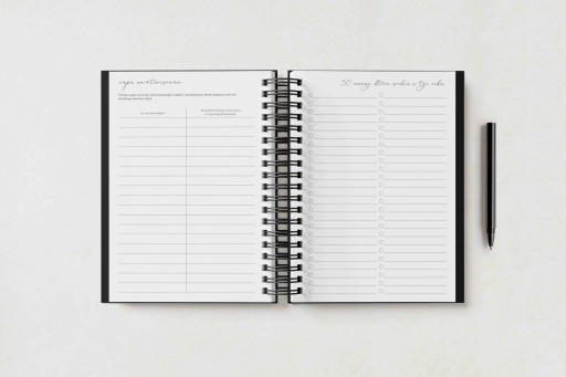 - Harmonogram każdego dnia. Priorytety dzienne, miejsce na Twoje notatki na każdej stronie. Lista rzeczy do zrobienia i moźliwość odznaczenia aktywności fizycznej.