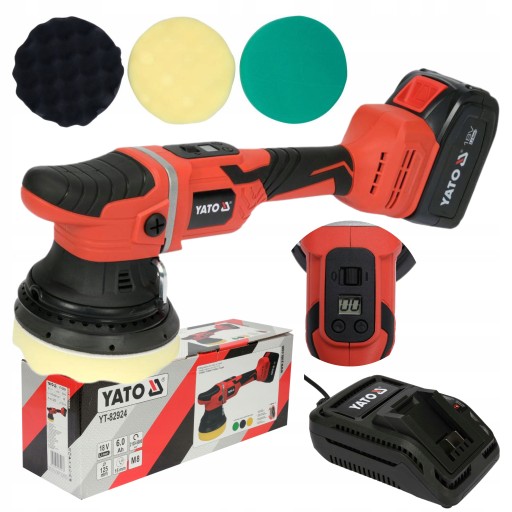 ПОЛИРОВАЛЬНАЯ ОРБИТАЛЬНАЯ ШЛИФОВАЛЬНАЯ МАШИНА YATO АККУМУЛЯТОРНАЯ 18 В 125 ММ + 4 Ач 3 ГУБКИ